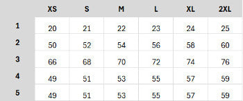 In this table you will find the size specifications of this garment in centimeters.