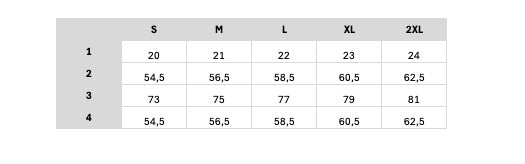 In this table you will find the size specifications of this garment in centimeters.